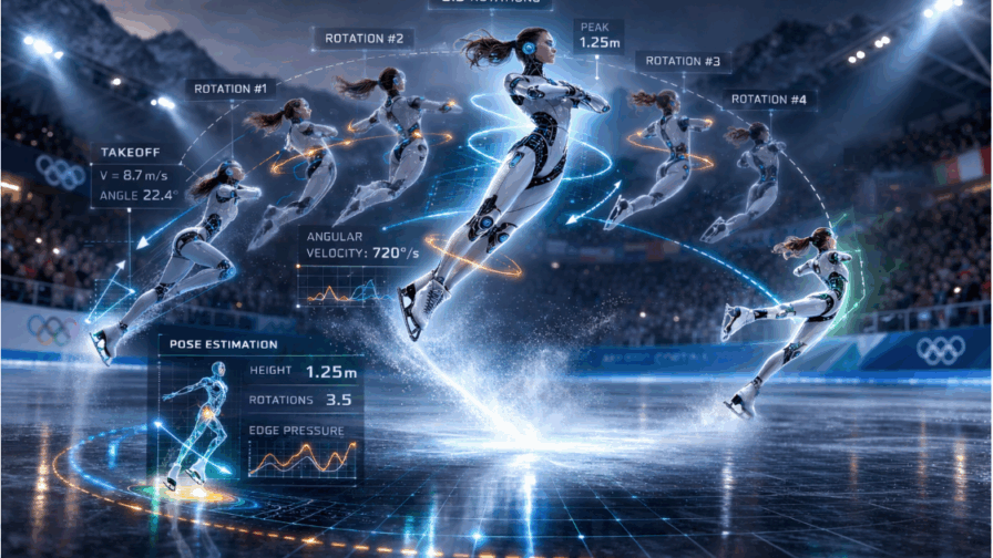 In alpine skiing and ski jumping, computer vision systems generated near-instantaneous 3D motion maps. Biomechanical analysis became a live feature-extraction stream: