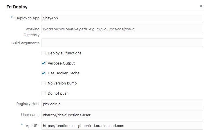 DevCS supports Fn Project functions life cycle command definition in our CI/CD jobs. This means that you can automate Fn build and deploy steps in a declarative way. We also added support that enables levergaing the hosted FaaS offering in the cloud and CI/CD directly into that environment.
