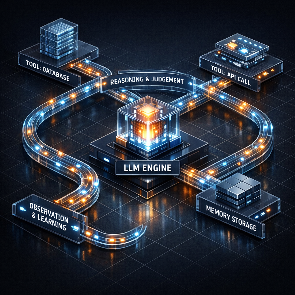 En la fiebre actual por la Inteligencia Artificial, hemos caído en una trampa conceptual: creer que un Large Language Model (LLM) es, por sí mismo, un agente. No lo es. Un LLM es un motor probabilístico extraordinario, una enciclopedia de patrones lingüísticos capaz de razonar sobre texto. Pero un motor, por potente que sea, no es un vehículo funcional si no tiene chasis, transmisión, ni un sistema de navegación. Un agente de IA no nace cuando escribes un System Prompt en una interfaz de chat. Un agente nace en el vacío de un problema de negocio que requiere autonomía.
